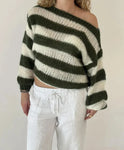 Maak kennis met de Jessy Knitted Striped Sweater, een must-have die moeiteloos stijl en comfort combineert. Met zijn speelse, horizontale strepen en klassieke ronde hals is deze gebreide trui perfect voor een casual, maar toch verfijnde look. De mix van warme en zachte materialen zorgt ervoor dat je deze sweater graag keer op keer zult dragen.
