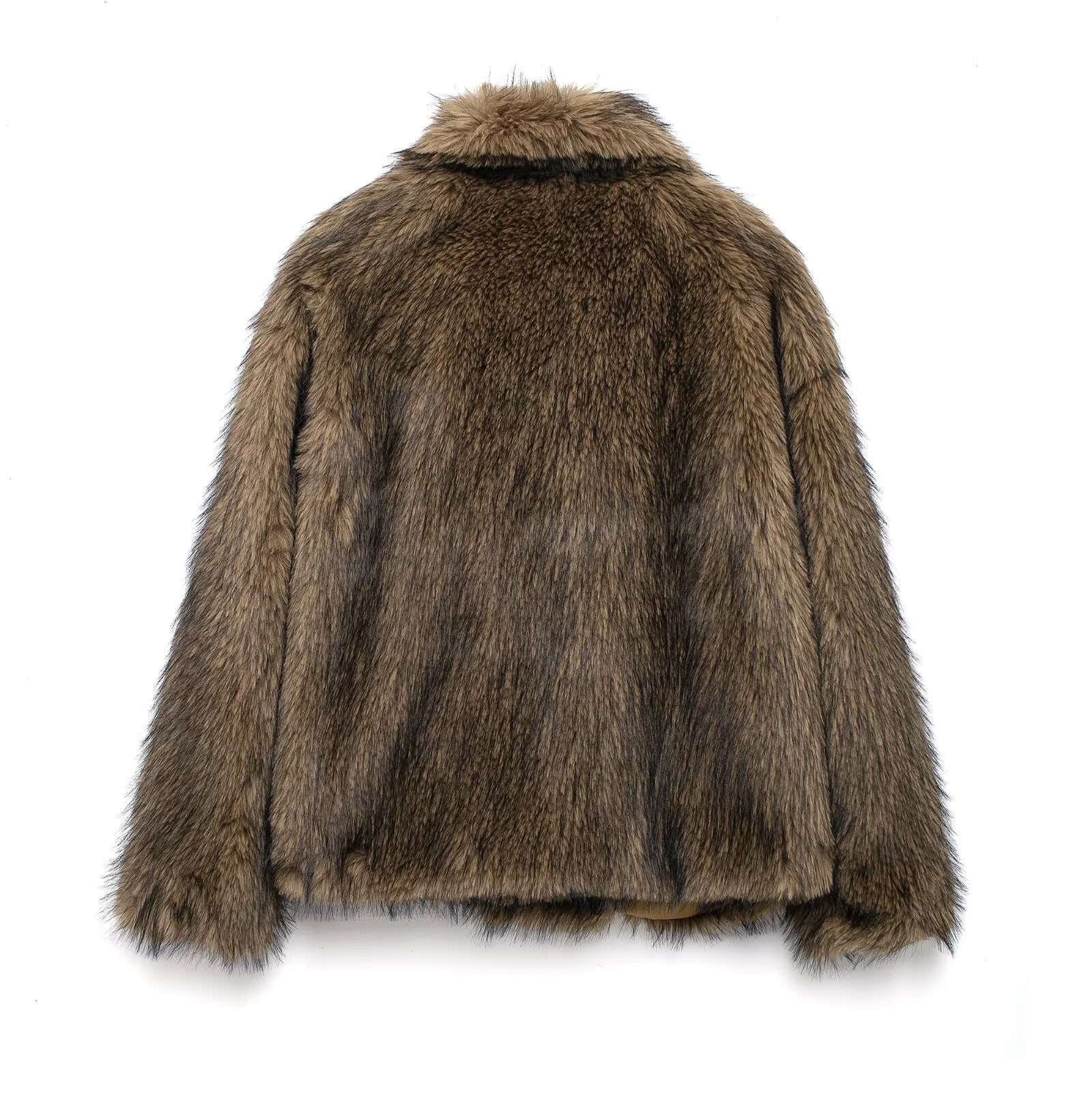 • Långa ärmar: Ger extra värme och skapar en klassisk, snygg look. De långa ärmarna gör denna fuskpälskappa mångsidig.