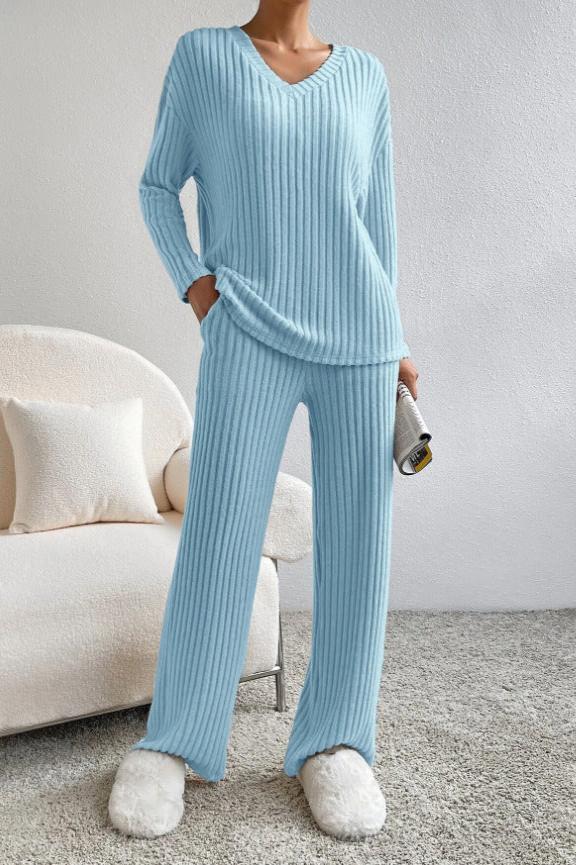 Detta stickade set är perfekt för flera säsonger tack vare det andningsbara, varma tyget och den tidlösa designen, vilket håller dig bekväm och snygg oavsett väder.