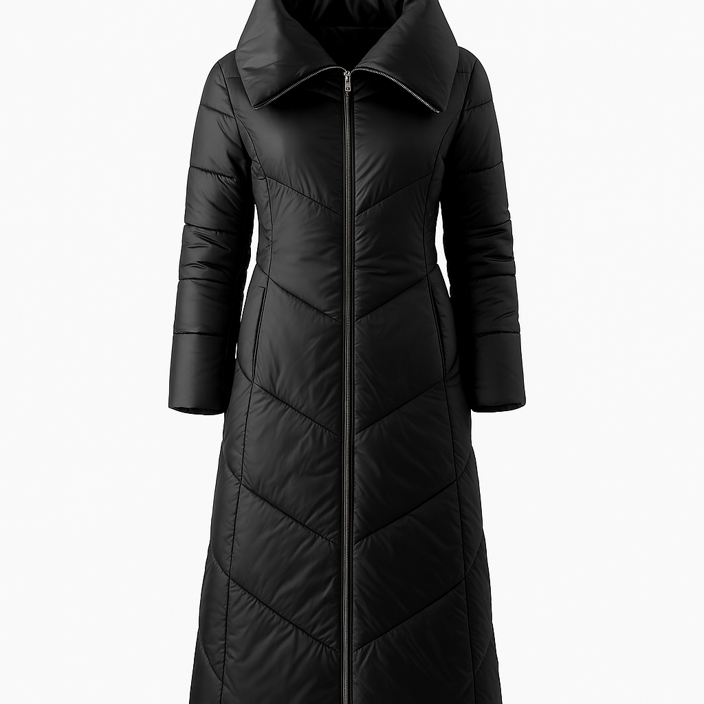 Möt denna långa vinterkappa – den eleganta och funktionella vinterkappan som kombinerar stil med praktiska egenskaper. Med sin långa skärning och quiltade design håller Lotte dig både varm och moderiktig under kalla dagar. Den blanka finishen och den stora kragen ger kappan ett lyxigt och sofistikerat utseende – perfekt för alla som vill sticka ut i vinter.